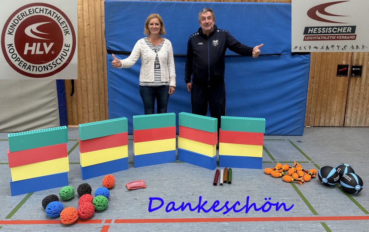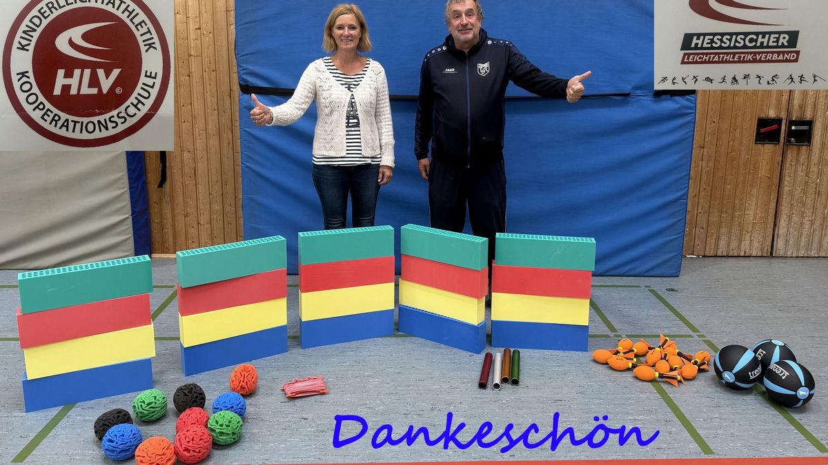 Seit Frühjahr 2024 gehört die Grundschule am Pfaffenberg zu den offiziellen KiLa-Kooperationsschulen des HLV. Gemeinsam mit der TG 1879 Traisa werden derzeit zwei Kinderleichtathletik-AGs im Ganztagsprogramm angeboten, die den Schülerinnen und Schülern Freude an Bewegung vermitteln und sie behutsam an die Grundlagen des Sports heranführen. Zur Unterstützung erhielt die Schule ein umfangreiches Materialpaket des HLV mit Hürden, Bällen und Staffelstäben, das für noch mehr Abwechslung im Training sorgt. Schulleiterin Eva Buono und Tobias Schweighöfer von der TG Traisa unterstrichen die langjährige gute Zusammenarbeit zwischen Schule und Verein, die das sportliche Miteinander in Nieder-Ramstadt stärkt.