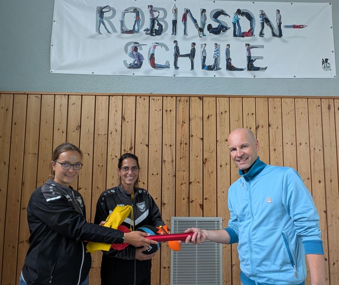 An der Robinson-Schule fiel im September 2025 der Startschuss für eine neue KiLa-AG in Kooperation mit der SG DJK Hattersheim 1966. Auf den Bildern zum Auftakt sind AG-Leiterin Kathrin Roßnagel, Konrektor Matthias Kilb sowie Vereinstrainerin Rebecca Kaufmann zu sehen. Die Kinder lernen hier nicht nur spielerisch leichtathletische Bewegungen, sondern verbessern auch Koordination, Beweglichkeit und entdecken die Freude an der Bewegung.