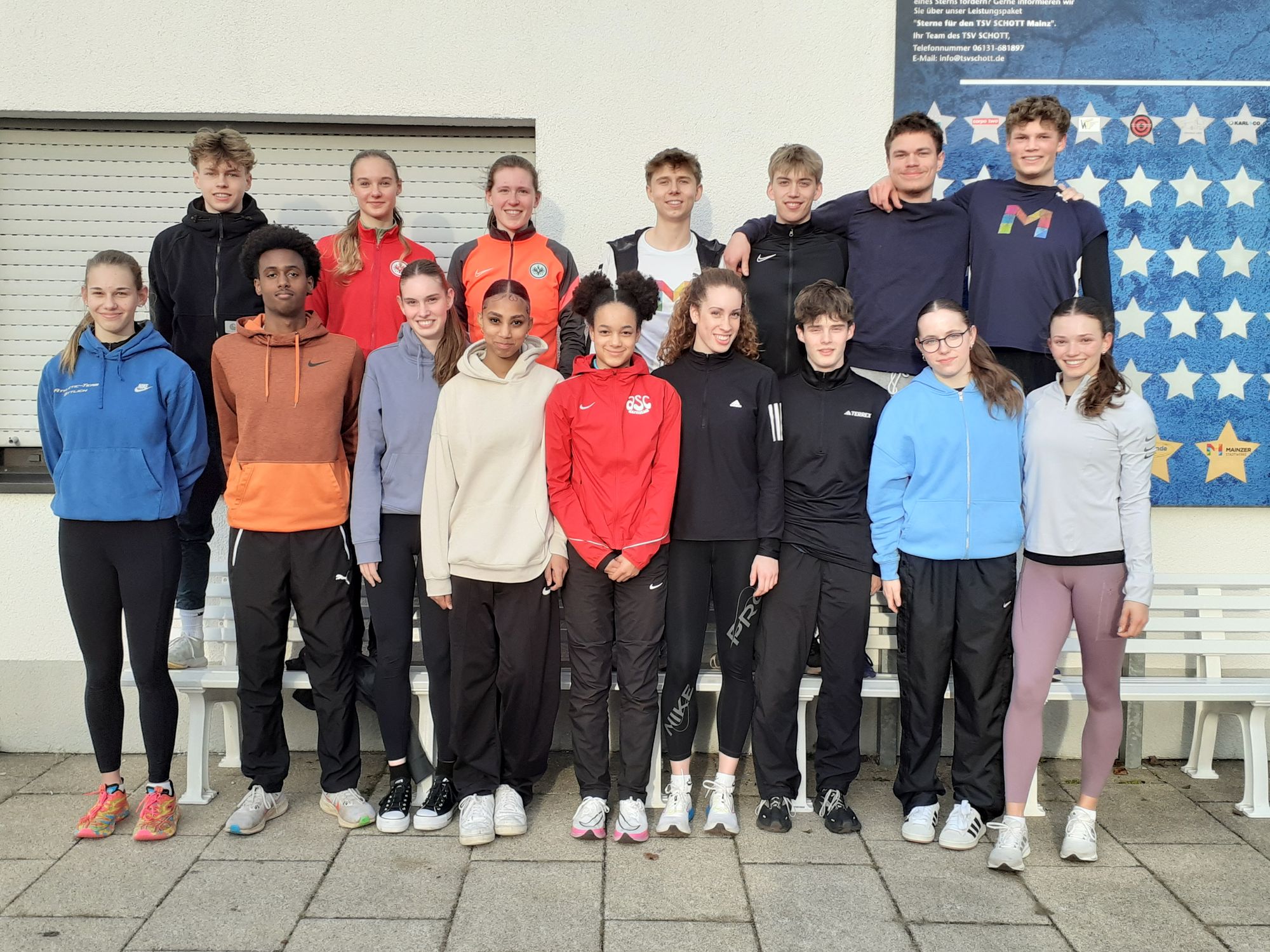 Am vergangenen Samstag, den 9. März, fand auf den Anlagen des TSV SCHOTT Mainz die gemeinsame NK-2-Regionalmaßnahme der Leichtathletik-Landesverbände Hessens, des Saarlandes sowie der drei rheinland-pfälzischen Verbände statt. Unter der Anleitung von Jürgen Bernhart (Bad Homburg, Landestrainer Sprint RLP), Marc Kowalinski (Trier, Bundestrainer Langstrecke) und Alexander Gakstädter (Zweibrücken, Bundestrainer Stabhochsprung und Landestrainer Sprung RLP) sowie der Gesamtleitung von Stefan Letzelter (Klein-Winternheim, Leitender Landestrainer RLP) absolvierten 17 Mitglieder des jüngsten Bundeskaders, darunter sieben aus Rheinland-Pfalz, acht aus Hessen (Tom Bingel, Josephina Engel, Louisa Grauel, Henning Judt, Hannah Lösel, Finja Ponndorf, Leticia Puknus, Heba Tidjani) und zwei aus dem Saarland bei sonnigem Wetter zwei gemeinsame Trainingseinheiten. Des Weiteren standen das Kennenlernen untereinander und der anwesenden Trainer, Teambuilding und Informationsaustausch im Fokus. Das Team für diese erstmals in Rheinland-Pfalz ausgetragenen Maßnahme ergänzte Physiotherapeut Nico Weimer, der ein Alternativtraining für die angeschlagenen Athleten anbot und bei Problemen immer ansprechbar war. Nach der ersten Trainingseinheit und dem Mittagessen leitete die ehemalige Stabhochspringerin und aktuelle DLV-Sportpsychologin Dr. Lisa Urban (geb. Rysih) einen Workshop, bevor es für die zweite Einheit zurück ins Stadion ging. Der DLV-Teammanager Nationalmannschaft Nachwuchs Adi Zaar, der die saarländischen Athleten begleitete, gab wertvolle Informationen zur Sommersaison sowie dem Qualifikationsmodus zur U18 EM in Banská Bystrica, für die meisten Teilnehmer das wichtigste Saisonziel. Die jungen Sportlerinnen und Sportler zeigten sich bei den Trainingseinheiten und dem Workshop sehr engagiert und gaben am Ende der Veranstaltung durchgängig ein positives Feedback. Allen, die zum Gelingen der Maßnahme beigetragen haben, sei auch an dieser Stelle noch einmal herzlich gedankt.