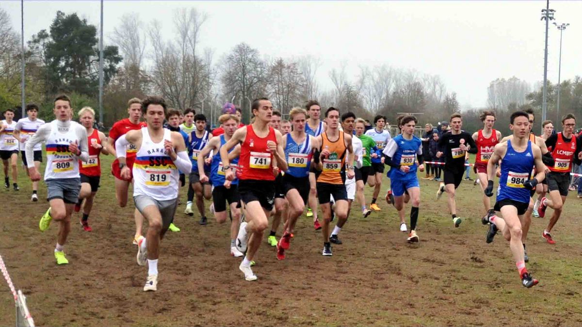 Trebur. Um 12.10 Uhr stand Bastian Mrochen vom Laufteam Kassel das erste Mal an der Startlinie auf dem Hartplatz in Trebur. Nach 4200 Metern und knapp 13 Minuten später hatte er sich mit 9 Sekunden Vorsprung gegen 20 Konkurrenten durchgesetzt und seinen ersten von zwei Titeln bei den diesjährigen Hessischen Cross-Meisterschaften erlaufen. 1:57 Stunden später stand Bastian erneut an der Startlinie, um diesmal 7000 Meter zu absolvieren. Neuerlich war ihm keiner seiner diesmal 26 Konkurrenten aus mehreren Altersklassen gewachsen. Und so holte er sich mit einem Vorsprung von 9 Sekunden seine 2. Goldmedaille. Hieß im 1. Rennen sein erster Verfolger Fynn Becker vom SSC Hanau-Rodenbach, so war es im zweiten Jakob Stenzel von Spiridon Frankfurt, zugleich Sieger der M30. In beiden Läufen Dritter wurde der Meister des Vorjahres auf der Mittelstrecke, Kilian Schreiner vom ASC 1990 Breidenbach. In der Mannschaftswertung führte Fynn seine Mannschaftskameraden Lukas Abele und Luis Gabriel Braukhoff zum Titel. Und Kilian Jannik Weber und Nikolas Wandenski zur Vizemeisterschaft. Auf der Langstrecke war es der Viertplatzierte Abdi Uya Antreiber, der mit Andrii Hrytsenko (12.) und Sören Plag (15.) dem LC Mengerskirchen die Mannschaftsmeisterschaft sicherte. Vizemeister wurde hier der LC Diabü Eschenburg mit Tobias Schulz (7.), Samuel Eizenhöfer (11.) und Martin Herbold (15.).