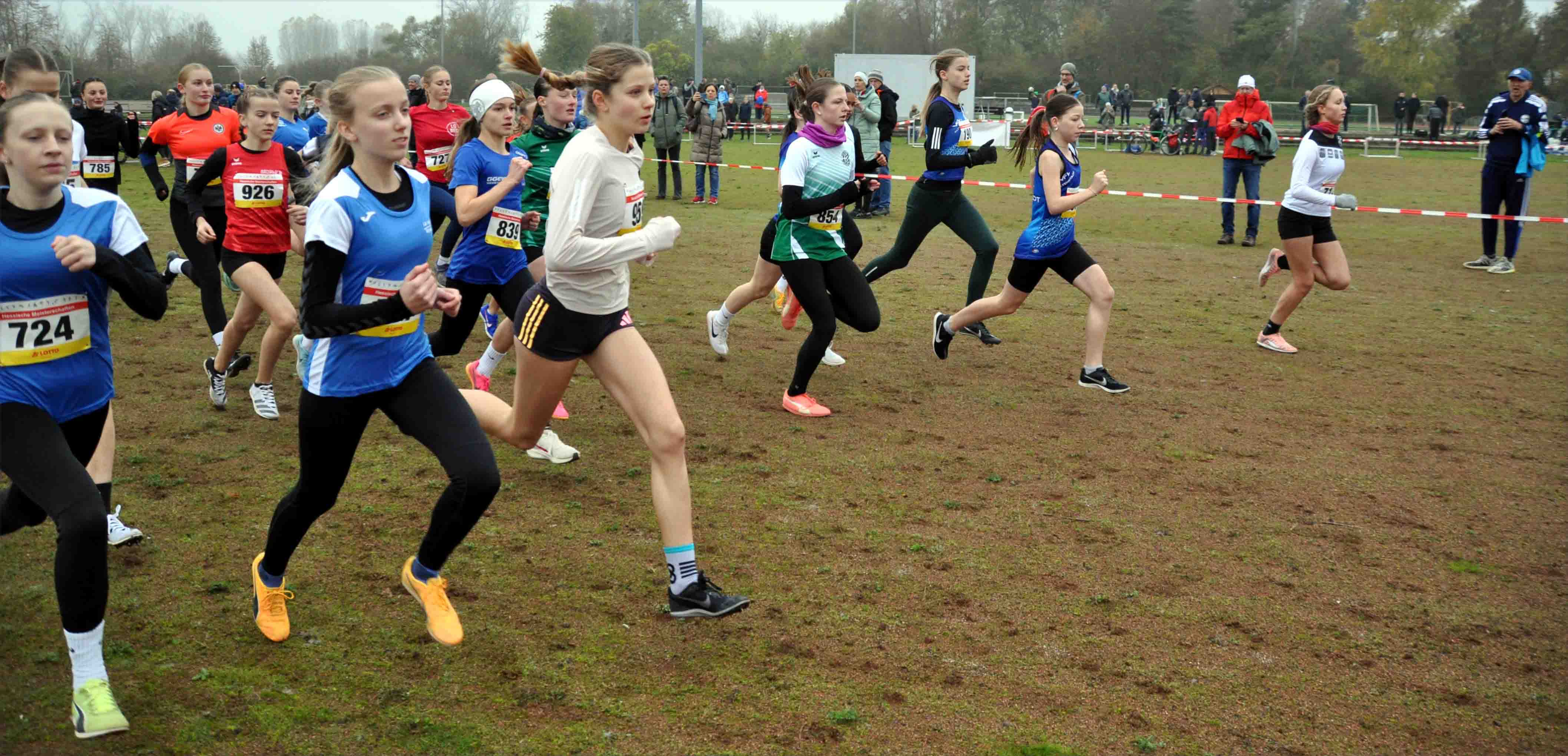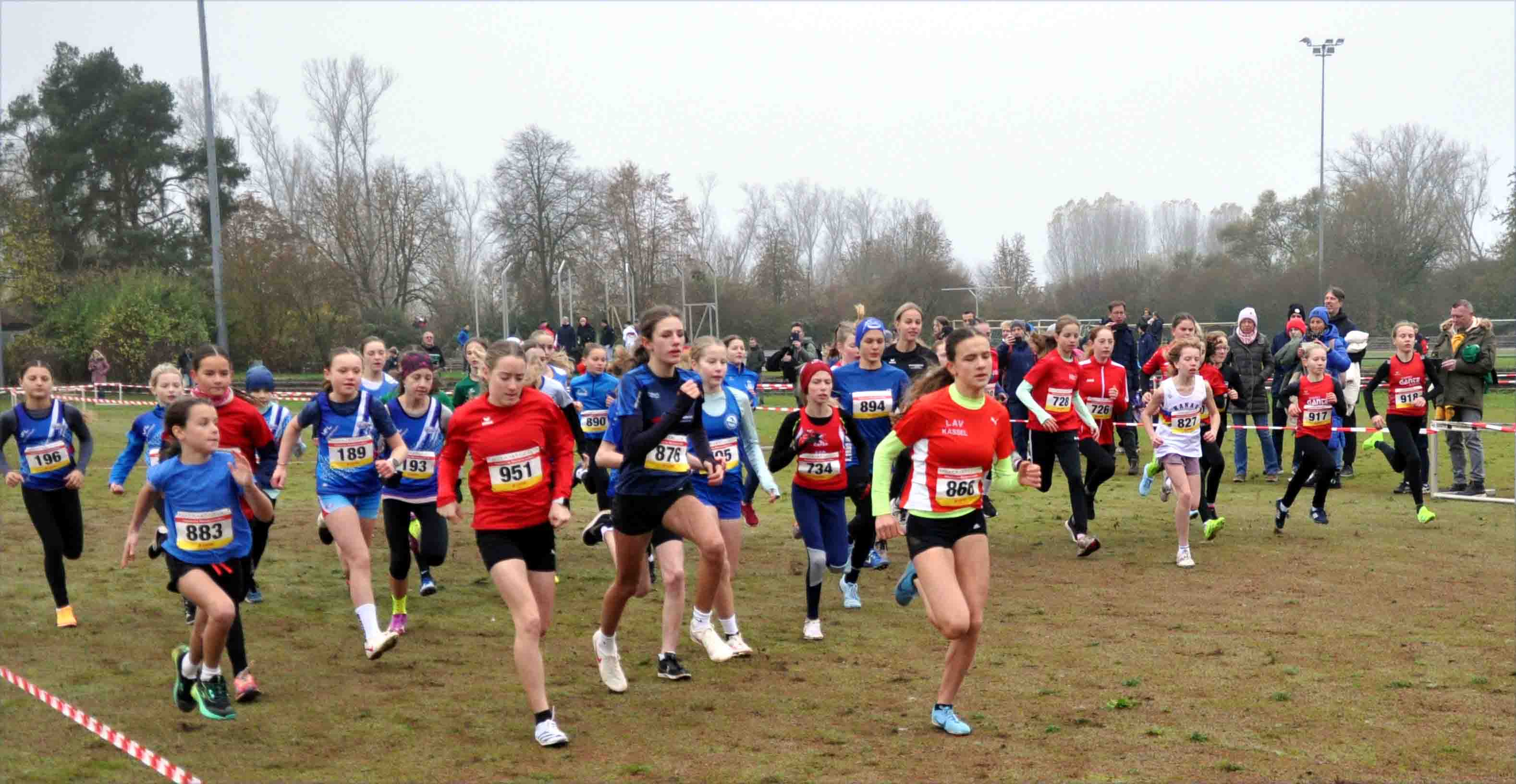 Den 1. Meistertitel des Tages erlief sich jedoch Zinedin Vrabac vom SSC in der M13 über 1400 Meter. Vizemeister wurde hier Matti Haas vom TV Waldstraße Wiesbaden (TV). Der 3. Platz ging an Tim Opperr, ebenfalls SSC. Ergänzt durch den Sechsplatzierten Maxim Pavlovic ging auch die Mannschaftsmeisterschaft an den SSC. Als insgesamt Siebter der M U14 lief der Sieger der M12, Rafael Roth, VfL Altenstadt, über die Ziellinie. Mit 9 Sekunden Abstand folgte ihm Florian Erb, VfL 1860 Marburg, der sich eine Sekunde vor dem Drittplatzierten Theo Marschall, LC Marathon Rotenburg, behauptete. In der W U14 ließ Elia Becker, LAV Kassel (LAV), ab den ersten Metern keine Zweifel daran, dass der Sieg nur über sie geht. Gleichwohl lief sie nur drei Sekunden Vorsprung auf die Vizemeisterin der W13, Lina Rittgen, TV heraus. Dritte wurde hier Elisa Huberti, LC Olympia Lorsch. Die Siegerin der W12, Elisabeth Sattler, LG VfL/SSG Bensheim, legte den Grundstein, um mit ihren Mannschaftskameradinnen Alisa Kraft und Carolin Streng den Mannschaftstitel der W U14 zu erringen. Mit zwei Punkten Rückstand wurden Emma Decker, Fenja Behle und Greta Funke vom TSV Niederelsungen Vizemeisterinnen. Der M15-Meister-Titel ging nach 2800 Metern durch Leo Kleesiek, LAV, ebenfalls nach Nordhessen. Zweiter wurde hier Linus Klinge, LG Reinhardswald. Dazwischen schob sich jedoch der Sieger der M14, Bogdan Sinitsyn, TV, vor Luca Kaiser, TSV Niederelsungen, und Bogdan Prokhorov, LG Rüsselsheim. Die Schnellste der W U16 heißt Marielies Quehl, SC Steinatal. Zweite wurde Finja Strauch von der TG Traisa. Platz 3 gesamt ging an die W15-Siegerin Anne Charlotte Biesing, TV Heppenheim. Den Mannschaftsmeisterinnen-Titel holten sich jedoch Linda Schmitt, Hannah Sattler und Amalia Teckie vom Hünfelder SV. Der SSC beherrschte die M U18 über 4200 Meter durch Christian Mario Ache als Sieger und Tom Knauer als Drittem. Zusammen mit Nils Schrodt (10) ging auch der Mannschaftstitel dorthin. Zweiter wurde hier Laurenz Christian Steiß, VfL 1860 Marburg. Die Plätze 2, 10 und 13 durch Paul Fecher, Jonathan Erdriß und Tim Völker bescherten dem SSC auch den Mannschaftstitel in der M U20. Vizemeister wurden hier Laurens Eric Albers, Aaron Wicke und Jonas Webelhuth von der MT Melsungen, einen Punkt vor dem VfL Altenstadt mit Kjell Jonas Credner, Leopold Kohler und Ferreira Ruben Magalhaes. Im Rennen der W U18 siegte mit Pauline Kleesiek, LAV, neuerlich eine Nordhessin. Sie lief 9 Sekunden auf Hannah Lössel, Eintracht Frankfurt heraus, die weitere 8 Sekunden Vorsprung vor Amelie Tortell, LG OVAG Friedberg-Fauerbach, hatte. Mannschaftsmeisterinnen wurden hingegen Johanna Weber, Emeily Harms und Marina Grauert vom LC Marathon Rotenburg. In der W U20 gab es mit Charlotte Weigand, ASC 1990 Breidenbach, Kirstin Schuster, LG Langgöns/Oberkleen, und Liv Minzenmay, Eintracht Frankfurt, leider nur eine geringe Resonanz.